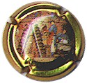 Cuvée du Bicentenaire - contour or, cercle or strié vertical noir, cercle blanc avec inscription blanche strié noir "Jacquesson & Fils" et inscription grise "champagne", cercle or avec inscription grise "200 ans" répétée 4 fois, date centrale blanche "1798" sur fond rouge - échange contre 2 |
