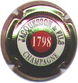 fond noir, inscription or "Jacquesson & Fils", couronne centrale or légendée "1798" |