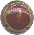 contour bordeaux, cercle bordeaux entouré or contenant inscription or "Champagne Guy Jacopin - Vertus", blason central sur fond blanc contenant les lettres or "G" et "J" sur fond bordeaux séparées par une barre transversale or, porté par un rideaux blanc fleurdelysé bordeaux, rideaux extérieur or et surmonté d'une couronne or |