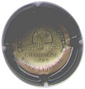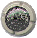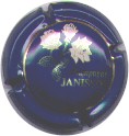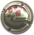 fond gris, double cercle or, inscription blanche "Champagne F. Janisson - Ludes", le nom étant dans un cartouche bordé or, blason avec écusson central blanc contenant initiales grises "J" et "F", entouré de 2 lions et surmonté d'une couronne |