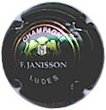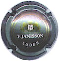 fond vert foncé, double cercle or, inscription blanche "Champagne F. Janisson - Ludes", le nom étant dans un cartouche bordé or, blason avec écusson central blanc contenant initiales bleues "J" et "F", entouré de 2 lions et surmonté d'une couronne |