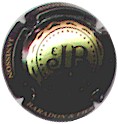contour gris avec inscriptions blanches "Champagne janisson Baradon & Fils - Epernay", centre noir entouré de 3 cercle gris (vagues, ligne pleine et points), contenant les initiales "&", "J", "B" et "F" enlacées |