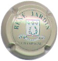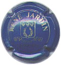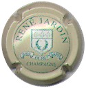 fond crème, cercle vert, inscription verte "René Jardin - Champagne", blason central vert et blanc contenant une couronne de laurier et 3 fleurs de Lys, légendé dans un ruban "Dieu en soit gardé" |