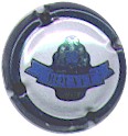 contour bleu foncé, fond blanc, motif central bleu et argent, cordellette bleu bordé argent contenant l'inscription argent "Bouvet", souligné par l'inscription "Brut" argent sur fond bleu, surmonté d'un blason argent et bleu |