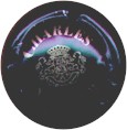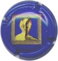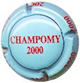 fond bleu, inscription rouge sur le contour "2000", cercle noir, inscription centrale rouge "Champomy 2000" |