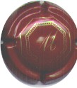 fond bordeaux, octogone or, octogone bordeaux bordé or contenant des points or, grande lettres centrales or manuscrite "M" |