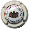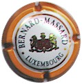 contour crème, cercle or, inscription noire "Bernard-Massard - Luxembourg", blason central or et rouge contenant 2 écusson rouge strié noir avec des motifs or, entouré de 2 lions et surmonté d'un heaume |