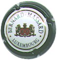 contour vert foncé, cercle or, inscription noire "Bernard-Massard - Luxembourg", blason central or et rouge contenant 2 écusson rouge strié noir avec des motifs or, entouré de 2 lions et surmonté d'un heaume |