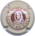 Louis de Sacy | 171-1-3 | fond crème, cercle crème entouré bordeaux contenant l'inscription "Champagne - Louis de Sacy", portrait central bordeaux souligné dans un cartouche par l'inscription bordeaux "Depuis 1633" |