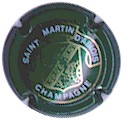 Saint-Martin d'Ablois | vert 171-1-5 | fond vert, cercle or dont le haut prend une forme de catouche ruban et contient l'inscription blanche "Saint-Martin d'Ablois", blason central or reprenant les armes de Champagne auxquelles viennent s'ajouter un motif haut avec feuilles de vignes et grappes de raisins, et un motif bas avec une roue à aube et un ruisseau, le tout souligné par l'inscription blanche "Champagne" |