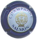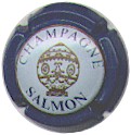 Salmon | mongolfière or 171-2-2 | contour bleu, cercle or, fond blanc bleuté, inscription bleue "Champagne Salmon", motif central or représentant une mongolfière style Pilâtre du Rosier |