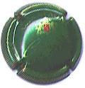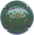 Salmon | vert 171-2-1 /201-2-4 | fond vert, cercle or, inscription or "Champagne Salmon", blason central or fond marron contenant un vigneron récoltant le raisin, entouré de grappes de raisins et feuilles de vigne |