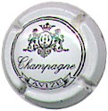 Sanger | blanc 172-1-3 /202-2-2 | fond blanc, double cercle noir se terminant par un cartouche contenant l'inscription noir sur blanc "Avizé", inscription centrale manuscrite "Champagne", surmonté d'un blason contenant un cep de vigne, entouré de 2 lions et surmonté d'une couronne |