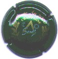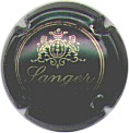 Sanger | vert 172-1-1 /202-1-6 | fond vert foncé, double cercle or se terminant par un cartouche contenant l'inscription or sur vert "Avizé", inscription centrale manuscrite "Sanger", surmonté d'un blason contenant un cep de vigne, entouré de 2 lions et surmonté d'une couronne |