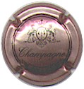 Sermiers | contour rosé 173-2-3 /204-2-3 | contour strié rosé et or, cercle or entouré noir contenant inscription noire "Champagne Sermiers", blason central or et noir sur fond rosé avec armes de Champagne sur rideau fleurdelysé noir et or |