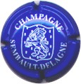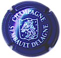 Sembault Delagne | bleu et blanc 173-1-3 /204-1-1 | fond bleu, inscription blanche lettres fines "Champagne Sembault-Delagne", blason blanc, lion couronnée portant une épée et un sceptre, sur fond fleurdelisé stylisé |