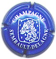 Sembault Delagne | bleu et blanc let épaisses 173-1-3 /204-1-1 | fond bleu, inscription blanche lettres épaisses "Champagne Sembault-Delagne", blason blanc, lion couronnée portant une épée et un sceptre, sur fond fleurdelisé stylisé |