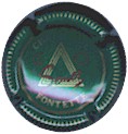 Salmon | Mongolfiades de la vallée de l'Ardre vert foncé (NR) | fond vert foncé, cercle vert foncé entouré vert contenant l'inscription verte "2ème Mongolfiades de la vallée de l'Ardre", motif central représentant une croix souple verte coupée en 2 par un trait bleu, le haut de la croix jouant le rôle de la lettre "V" dans le mot "Vallée" et le bas de la croix jouant le rôle de la lettres "A" dans le mot "Ardre", le tout étant donc une inscription bleu "Vallée de l'Ardre" |