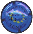 Cristian Senez | cuvée du millénaire 173-2-2 /204-2-1 | fond bleu clair, inscription marron "Champagne Senez- cuvée du millénaire", couronne composée de 12 étoiles haune au centre |