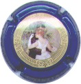 Cristian Senez | cuvée Renoir (NR) /204-2-2 | contour bleu contenant inscription or "Champagne Cristian Senez - Cuvée Renoir", cercle crème contenant des enluminures or pâle, cercle central représentant un couple dansant devant un palmier |