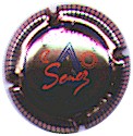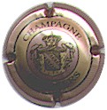 Daniel Savart | or 172-1-5 /202-2-5 | fond or, cercle bordeaux, inscription bordeaux "Champagne - Ecueil", chaîne bordeaux et or fermé en haut par un blason de Champagne contenant la lettre "S" et surmonté d'une couronne, inscription centrale bordeaux lettres cursives "Daniel Savart" |