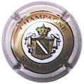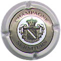 Sermiers | contour blanc 173-2-3 /204-2-3 | contour strié blanc et noir, cercle or entouré noir contenant inscription noire "Champagne Sermiers", blason central or et noir sur fond blanc avec armes de Champagne sur rideau fleurdelysé or et blanc |