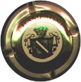 Sanger | vert et or 172-1-3 /202-2-2 | fond vert foncé, double cercle or se terminant par un cartouche contenant l'inscription or sur vert foncé "Avizé", inscription centrale manuscrite "Champagne", surmonté d'un blason contenant un cep de vigne, entouré de 2 lions et surmonté d'une couronne |
