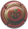 Sermiers | contour marron 173-2-3 /204-2-3 | contour strié marron et or, cercle or entouré noir contenant inscription noire "Champagne Sermiers", blason central or et noir sur fond marron avec armes de Champagne sur rideau fleurdelysé noir et or |