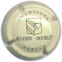 Severin-Doublet | crème 173-2-6 /204-2-6 | fond crème, inscription noire "Champagne - Severin-Doublet - Vertus", blason central haut partie gauche armes de champagne, partie droite coeur transpersé d'une flêche, armes de Vertus |