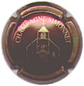 Simonnet | bordeaux et or (NR) | contour bordeaux strié or, fond bordeaux, inscription or "Champagne Simonnet - Chouilly", motif central or représentant une église |