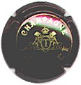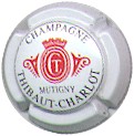 Thibaut-Charlot | blanc, rouge et noir (NR) /210-1-4 | fond blanc, cercle noir, inscription noire "Champagne - Thibaut-Charlot - Mutigny", blason central rouge reprenant dans un ovale les lettres "TC, entouré d'enluminures et surmonté d'une couronne |