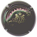 Paul Tixier | noir 180-1-5 /212-2-4 | fond noir, cercle or, ruban en haut inscription or sur fond noir "Champagne, en bas inscription or "Paul Tixier", motif central représentant un coin de table avec une bouteille de champagne dans un seau et 2 flûtes. |