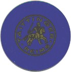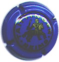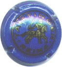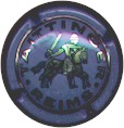 Taittinger | bleu et or- petit dessin (65) plaque | plaque - fond bleu, cercle or, inscription or "Taittinger - Reims", petit dessin cheval et cavalier avec épée or et noir, cercle or bordé de noir |