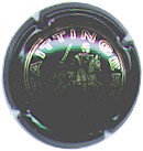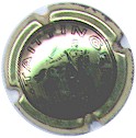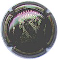 Taittinger | vert foncé et or - petit dessin (62) | fond vert foncé, cercle or, inscription or "Taittinger - Reims", petit dessin cheval et cavalier avec épée or et noir, cercle or bordé de noir |