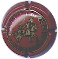 Taittinger | bordeaux gd dessin (47) | fond bordeaux, cercle or bordé noir, inscription or bordé noir "Taittinger - Reims", grand dessin cheval et cavalier avec épée or et noir, cercle or bordé de noir - échange contre 2 |