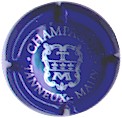Tanneux-Mahy | bleu et argent (NR) /208-2-3 | fond bleu, inscription argent "Champagne Tanneux-Mahy", blason central argent contenant les lettres T en haut et "M" en bas séparé par une bande de 3 fleurs de lys argent |