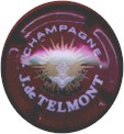 J. de Telmont | bleu, gdes lettres 177-2-5 /209-2-3 | contour or, cercle bleu contenant inscription "Champagne J. de Telmont", centre fond blanc bordé or, bas du cercle banderolle contenant l'inscripton gdes lettres "Damery - Champagne - France", motif central or représentant le heaume d'un chevalier |