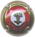 J. de Telmont | vert 177-2-5 /209-2-3 | contour or, cercle vert contenant inscription "Champagne J. de Telmont", centre fond blanc bordé or, bas du cercle banderolle contenant l'inscripton "Damery - Champagne - France", motif central or représentant le heaume d'un chevalier |
