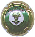 Tanneux-Mahy | crème 177-1-1 / 208-2-1 | fond crème, cercle vert, inscription verte "Champagne Tanneux-Mahy", motif central vert représentant une tête de daim |