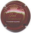 J. de Telmont | gd couronnement bordeaux 177-2-6 /209-2-4 | fond bordeaux, cercle or composé à gauche d'une tresse de feuilles de vignes, et à droite d'une tresse de feuilles de lauriers, fermé en haut par une couronne, inscription blanche "J. de Telmont", or cursive "Grand Couronnement" et blanche "Champagne" - échange contre 2 |