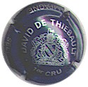 David de Thiebault | bleu foncé et argent 178-2-3 /210-2-5 | fond bleu foncé, inscription argent sur le contour "Champagne Sélection caves du soleil", inscription argent "David de Theibault - 1er cru", blason central argent reprenant les armes de Champagne, entouré de 2 licornes, souligné par la légende "Dieu et mon droit", surmonté d'une heaume |