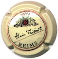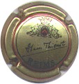 Alain Thienot | crème 179-1-2 /211-1-4 | fond crème, cercle crème bordé extérieur rouge intérieur noir, armoiries fond rouge chevrons noirs surmonté d'une couronne, inscription centrale manuscrite "Alain Thienot", inscription basse noire "Reims" |