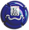 J. de Telmont | bleu 177-2-5 /209-2-3 | contour or, cercle bleu contenant inscription "Champagne J. de Telmont", centre fond blanc bordé or, bas du cercle banderolle contenant l'inscripton "Damery - Champagne - France", motif central or représentant le heaume d'un chevalier |
