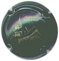 Trepail | vert foncé et or 180-2-3 /213-1-4 | fond vert foncé, cercle or, inscription or en haut à droite "Champagne Trépail", image centrale représentant une église et une grange |
