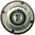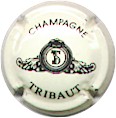 Tribaut | crème 180-2-5 /213-1-6 | fond crème, inscription noire "Champagne Tribaut", blason central noir contenant les initiales enlacées "S" et "T" |