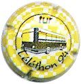 Téléthon | 94, jaune 195-2-2 / NR | fond quadrillé jaune et blanc, cercle noir contenant l'inscription noire manuscrite "Téléthon 94", inscription noire "tur", motif central noir représentant un autobus des Transports Urbain de Reims |