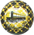 Téléthon | 94, tour noir et blanc 195-2-2 / NR | contour quadrillé noir et blanc, fond quadrillé jaune et blanc, cercle noir contenant l'inscription noire manuscrite "Téléthon 94", inscription noire "tur", motif central noir représentant un autobus des Transports Urbain de Reims |