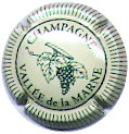 Vallée de la Marne | Crème, contour strié vert, écriture verte 181-2-3 /214-2-2 | contour strié crèmet et or, fond crème, inscription verte "Champagne - Vallée de la Marne", branche de vigne verte avec feuilles et grappe de raisin |