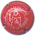 Vallée de la Marne - Dom Pérignon | rouge et blanc 181-2-5 /214-2-4 | fond rouge, moine avec une flûte de champagne, cercle blanc |