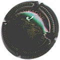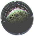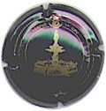 Voirin-Desmoulins | noir 187-2-1 | fond noir, double cercle en forme de vagues or, inscription or encerclé or "Champagne Voirin-Desmoulins", motif central or représentant une main tenant une flute de champagne |